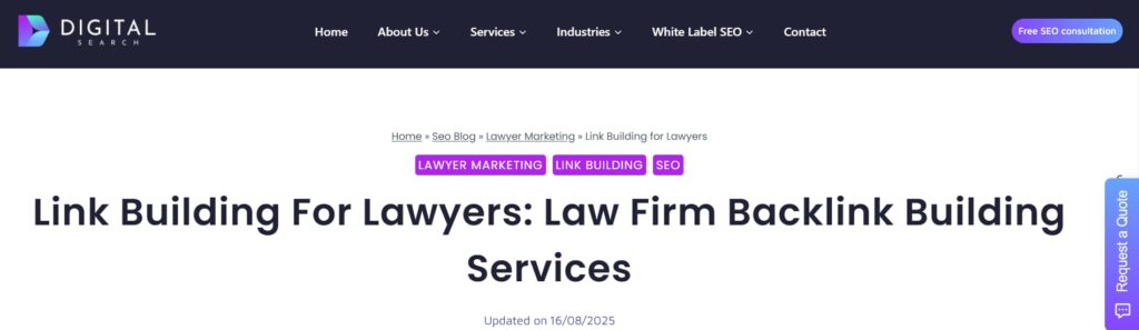 For legal practices, Digital Search Group offers a comprehensive suite of link-building solutions designed to improve visibility in competitive UK search markets. Their services include: